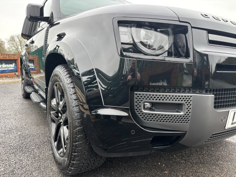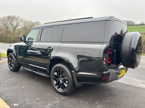 Ideal Commercials present this 2024 Land Rover Defender 130 D300 Outbound finished in Santorini Black. This one owner vehicle is fitted with Land Rover's 3.0 TD 300ps Euro 6 Engine and 8 Speed Automatic Gearbox and has covered only 16444 Miles and is supplied with a Full Land Rover Main Agent Service History and Land Rover Manufacturers Warranty until October 2027. Inside you will find Satellite Navigation, Tri-Zone Climate Controlled Air Conditioning, Bluetooth Phone and Media Connectivity, DAB/FM Radio with Apple Car Play/Android Auto, Satellite Navigation, 360 Degree Camera's, Sliding Panoramic Roof, Rear Mirror Camera, Heated/Ventilated Front Electrically Adjustable Seats, Heated Steering Wheel with Electrically Adjustable Steering Column, Wireless Phone Charging, Centre Console Fridge, Adaptive Cruise Control with Lane Departure Warning, Leather Upholstery with 60/40 Folding Rear Seats, Electric Front and Rear Windows, Electrically Adjustable & Heated Power Folding Wing Mirrors. Externally you will find Keyless Entry, Privacy Glass, Wide Arch Kit, Gloss Black Style 5095 Wheels, Solid Spare Wheel Cover (£430 option), Side Mounted Gear Carrier (£1049 option), Metallic Paintwork, Front and Rear Parking Sensors, LED Headlights.  To save your time we offer a UK Mainland Delivery Service to help with those busy days. Vehicle supplied HPi Clear with Certificate for Peace of Mind, a Multi Point Inspection and all vehicles are Supplied Fully Valeted. We also offer great low monthly payments spread over 3, 4, and 5 years to suit your circumstances. A full range of accessories available to suit your needs from Towbars, Seat Covers, and Roofracks.