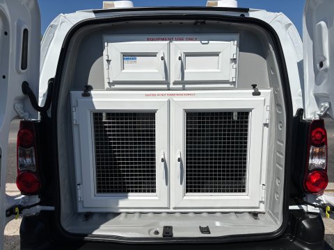 Ideal Commercials present this 2017 Citroen Berlingo L2 750 Kennel Dog Van finished in Polar White. This one owner, Direct from the MOD vehicle is fitted with Citroen's 1.6 Hdi 90ps Euro 6 Engine and 5 Speed Gearbox and has covered only 35024 Miles and is supplied with Service History (7 Services) and 3 Months Warranty. Inside you will find Air Conditioning, Selectable Rear Air Con with Extractor Fan and Run Lock, CD Player with FM Radio, Electric Windows, Electrically Adjustable Wing Mirrors, Adjustable Steering Column, Height Adjustable Drivers Seat and Single Passenger Seat. Externally you will find Remote Central Locking, Twin Side Loading Doors (leading to access to dogs) and Solid Barn Doors leading to a Fully Air Conditioned Kennel, with Divider, Accessories Storage and LED Lighting. Ideal for K9 Security Dogs, this vehicle can be locked and left running with the Air Conditioning on.  To save your time we offer a UK Mainland Delivery Service to help with those busy days. Vehicle supplied HPi Clear with Certificate for Peace of Mind, a Multi Point Inspection and all vehicles are Supplied Fully Valeted. We also offer great low monthly payments spread over 3, 4, and 5 years to suit your circumstances. A full range of accessories available to suit your needs from Towbars, Seat Covers, and Roofracks.