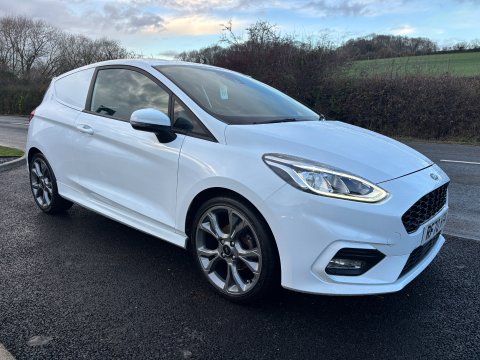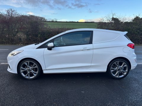 Ideal Commercials present this **No VAT** 2021 Ford Fiesta Sport Ecoboost Car Derived Panel Van finished in Frozen White. This one owner vehicle is fitted with Ford's 1.0 Ecoboost 125ps Euro 6 Engine and 6 Speed Gearbox and has covered only 29840 Miles and is supplied Fully Serviced and with 3 Months Warranty. Inside you will find Satellite Navigation, Air Conditioning, Bluetooth Phone and Media Connectivity, DAB/FM Radio with Apple Car Play/Android Auto and USB Connectivity, Quickclear Heated Windscreen, Automatic Headlights, Lane Departure Warning, Electric Windows, Electrically Adjustable & Heated Wing Mirrors, Reach and Rake Adjustable Steering Column, Height Adjustable Drivers Seat and Single Passenger Seat. Externally you will find Remote Central Locking, Full Sports Styling Kit, 18" Upgraded Alloy Wheels, Rear Parking Sensors, Colour Coded Bumper, and Glazed Tailgate Leading to a Factory Cargo Bay with Mesh Bulkhead. To save your time we offer a UK Mainland Delivery Service to help with those busy days. Vehicle supplied HPi Clear with Certificate for Peace of Mind, a Multi Point Inspection and all vehicles are Supplied Fully Valeted. We also offer great low monthly payments spread over 3, 4, and 5 years to suit your circumstances. A full range of accessories available to suit your needs from Towbars, Seat Covers, and Roofracks.Â