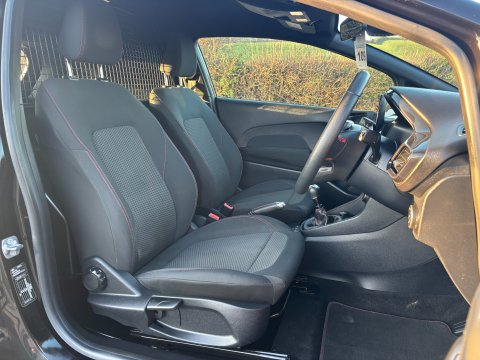 Ideal Commercials present this 2020 Ford Fiesta Sport Car Derived Panel Van finished in Agate Black. This one owner vehicle is fitted with Ford's 1.0 Ecoboost 125ps Euro 6 Engine and 6 Speed Gearbox and has covered only 29578 Miles and is supplied with a Full Ford Main Dealer Service History and 3 Months Warranty. Inside you will find Air Conditioning, Bluetooth Phone and Media Connectivity, DAB/FM Radio with USB Connectivity & Apple Car Play/Android Auto, Adjustable Speed Limiter, Quickclear Heated Windscreen, Automatic Headlights, Electric Windows, Electriclaly Adjustable & Heated Wing Mirrors, Reach and Rake Adjustable Steering Column, Height Adjustable Drivers Seat and Single Passenger Seat. Externally you will find Remote Central Locking, Metallic Paintwork, Full Sports Styling Kit with Upgraded Alloy Wheels, Front Fog Lights, and Glazed Tailgate with Mesh Bulkhead.  To save your time we offer a UK Mainland Delivery Service to help with those busy days. Vehicle supplied HPi Clear with Certificate for Peace of Mind, a Multi Point Inspection and all vehicles are Supplied Fully Valeted. We also offer great low monthly payments spread over 3, 4, and 5 years to suit your circumstances. A full range of accessories available to suit your needs from Towbars, Seat Covers, and Roofracks.