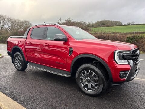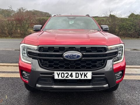 Ideal Commercials present this 2024 Ford Ranger Wildtrak V6 Double Cab 4x4 Pickup finished in Hot Pepper Red Metallic. This one owner vehicle is fitted with Ford's 3.0 V6 Tdci 240ps Euro 6 Engine and 10 Speed Automatic Gearbox and has covered only 8633 Miles and is supplied with a Full Service History and Ford Manufacturers Warranty until June 2027. Inside you will find Dual Zone Climate Controlled Air Conditioning, Satellite Navigation, Rear Parking Camera, Adaptive Cruise Control, DAB/FM Radio with Apple Car Play/Android Auto & Alexa, Automatic Headlights and Wipers, Leather Upholstery with Heated Front Seats and Electrically Adjustable Drivers Seat, Heated Steering Wheel, Quickclear Heated Windscreen, Electric Front and Rear Windows, Electrically Adjustable & Heated Power Folding Wing Mirrors, Reach and Rake Adjustable Steering Column, Height Adjustable Drivers Seat, Single Passenger Seat and 3 Seat Rear Bench with Isofix Mountings. Externally you will find Remote Central Locking, Metallic Paintwork, Alloy Wheels, LED Headlights, Privacy Glass, Electrically Operated Roller Shutter Cover leading to a Large Cargo Bay with Load Liner.  To save your time we offer a UK Mainland Delivery Service to help with those busy days. Vehicle supplied HPi Clear with Certificate for Peace of Mind, a Multi Point Inspection and all vehicles are Supplied Fully Valeted. We also offer great low monthly payments spread over 3, 4, and 5 years to suit your circumstances. A full range of accessories available to suit your needs from Towbars, Seat Covers, and Roofracks.Â
