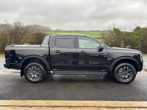 Ideal Commercials present this 2023 Ford Ranger Wildtrak V6 Double Cab Pickup finished in Agate Black. This two owner vehicle is fitted with Ford's 3.0 V6 Tdci 240 ps Euro 6 Engine and 10 Speed Gearbox and has covered only 12735 Miles and is supplied with a Full Service History and Ford Manufacturers Warranty until September 2026. Inside you will find Satellite Navigation, Climate Controlled Air Conditioning, 360 Degree Cameras, Bluetooth Phone and Media Connectivity, DAB/FM Radio with Apple Car Play/Android Auto, 12" Media Touchscreen, Adaptive Cruise Control, Heated Steering Wheel, Automatic Headlights, Rain Sensing Wipers, Quickclear Heated Windscreen, Electric Front and Rear Windows, Electrically Adjustable & Heated Power Folding Wing Mirrors, Reach and Rake Adjustable Steering Column with Multi Function Steering Wheel, Electrically Adjustable Drivers Seat, Single Passenger Seat and 3 Seat Rear Bench with Isofix Mountings. Externally you will find Keyless Entry, Metallic Paintwork, LED Headlights, Alloy Wheels, Side Steps, Privacy Glass, Front and Rear Parking Sensors, and Electric Roller Shutter Leading to a Cargo Bay with Load Liner.  To save your time we offer a UK Mainland Delivery Service to help with those busy days. Vehicle supplied HPi Clear with Certificate for Peace of Mind, a Multi Point Inspection and all vehicles are Supplied Fully Valeted. We also offer great low monthly payments spread over 3, 4, and 5 years to suit your circumstances. A full range of accessories available to suit your needs from Towbars, Seat Covers, and Roofracks.