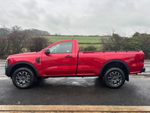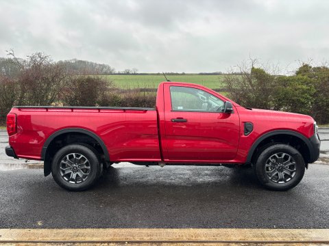Ideal Commercials present this 2024 Ford Ranger XL Single Cab 4x4 Pickup Truck finished in Hot Pepper Red. This one owner vehicle is fitted with Ford's 2.0 Tdci 170ps Euro 6 Engine and 6 Speed Gearbox and has covered only 4910 Miles and is supplied with a Full Service History and Ford Manufacturers Warranty until October 2027. Inside you will find Air Conditioning, Bluetooth Phone and Media Connectivity, DAB/FM Radio with Apple Car Play/Android Auto, Rear Parking Camera, Adaptive Cruise Control, Heated Steering Wheel, Selectable Four Wheel Drive, Automatic Headlights, Electric Windows and Electrically Adjustable & Heated Wing Mirrors, Reach and Rake Adjustable Steering Column, and Single Front Seats with Cloth Upholstery. Externally you will find Remote Central Locking, Metallic Paintwork, Alloy Wheels, Rear Parking Sensors, Towbar with Electrics and Bed Liner.  To save your time we offer a UK Mainland Delivery Service to help with those busy days. Vehicle supplied HPi Clear with Certificate for Peace of Mind, a Multi Point Inspection and all vehicles are Supplied Fully Valeted. We also offer great low monthly payments spread over 3, 4, and 5 years to suit your circumstances. A full range of accessories available to suit your needs from Towbars, Seat Covers, and Roofracks.Â