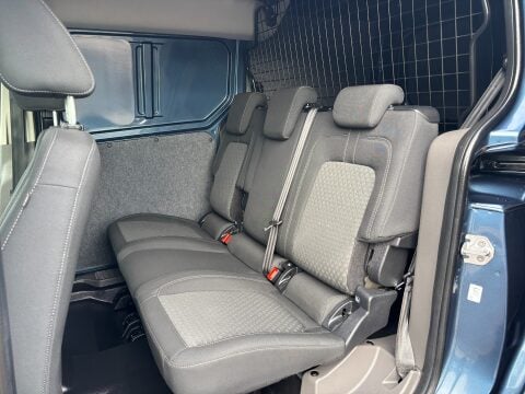 Ideal Commercials present this 2019 Ford Transit Connect 230 L2 Trend Double Cab in Van finished in Chrome Blue. This two owner vehicle is fitted with Ford's 1.5 Tdci 120ps Euro 6 Engine and 8 Speed Automatic Gearbox and has covered 67150 Miles and is supplied with Service History and 3 Months Warranty. Inside you will find Satellite Navigation, Air Conditioning, Bluetooth Phone and Media Connectivity, Rear Parking Camera, DAB/FM Radio with Apple Car Play/Android Auto, Cruise Control, Quickclear Heated Windscreen, Automatic Headlights, Electric Windows, Electrically Adjustable & Heated Wing Mirrors, Reach and Rake Adjustable Steering Column, Height Adjustable Drivers Seat, Single Passenger Seat and a 3 Seat Rear Bench with 60/40 Split Folding and Isofix Mountings. Externally you will find Remote Central Locking, Sports Styling Kit with 18" Black Alloy Wheels, Metallic Paintwork, Rear Parking Sensors, Front Fog Lights, Twin Side Loading Doors and Solid Barn Doors leading to a Factory Cargo Bay with Sliding Mesh Bulkhead.  To save your time we offer a UK Mainland Delivery Service to help with those busy days. Vehicle supplied HPi Clear with Certificate for Peace of Mind, a Multi Point Inspection and all vehicles are Supplied Fully Valeted. We also offer great low monthly payments spread over 3, 4, and 5 years to suit your circumstances. A full range of accessories available to suit your needs from Towbars, Seat Covers, and Roofracks.