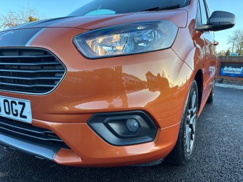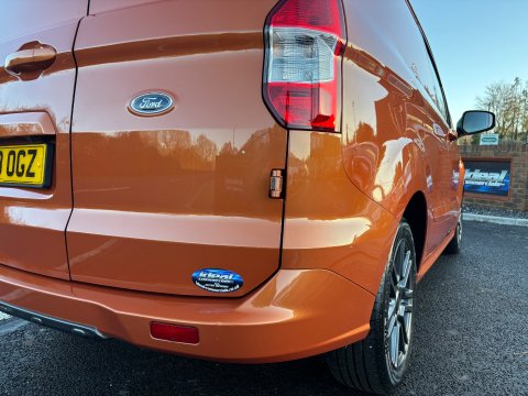 Ideal Commercials present this 2023 Ford Transit Courier Sport Panel Van finished in Deep Orange. This one owner vehicle is fitted with Ford's 1.0 Ecoboost 100ps Euro 6 Engine and 6 Speed Gearbox and has covered only 31945 Miles and is supplied with a Full Service and Ford Manufacturers Warranty until October 2026. Inside you will find Air Conditioning, Satellite Navigation, Bluetooth Phone and Media Connectivity, Rear Parking Camera, DAB/FM Radio with Apple Car Play/Android Auto and USB Connectivity, Quickclear Heated Windscreen, Automatic Headlights, Electric Windows, Electrically Adjustable & Heated Wing Mirrors, Reach and Rake Adjustable Steering Column, Height Adjustable Drivers Seat with Arm Rest and Single Passenger Seat. Externally you will find Remote Central Locking, Metallic Paintwork, Alloy Wheels, Sports Styling Kit, Side Loading Door and Solid Barn Doors leading to a Ply Lined Cargo Bay with Factory Fitted Bulkhead.  To save your time we offer a UK Mainland Delivery Service to help with those busy days. Vehicle supplied HPi Clear with Certificate for Peace of Mind, a Multi Point Inspection and all vehicles are Supplied Fully Valeted. We also offer great low monthly payments spread over 3, 4, and 5 years to suit your circumstances. A full range of accessories available to suit your needs from Towbars, Seat Covers, and Roofracks.Â