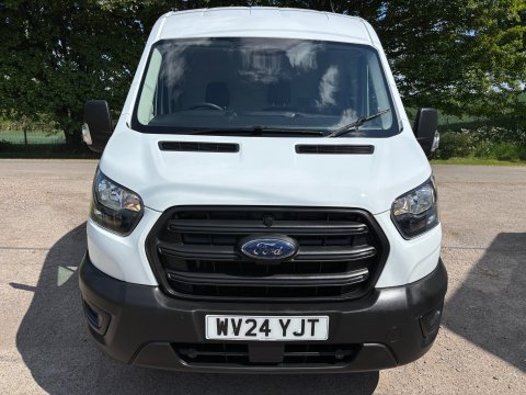 Ideal Commercials present this 2024 Ford Transit 350 L3 H2 Leader AWD Panel Van finished in Frozen White. This one owner vehicle is fitted with Ford's 2.0 Tdci 170ps Euro 6 Engine and 6 Speed Gearbox and has covered only 25952 Miles and is supplied with a Full Service History and Ford Manufacturers Warranty until March 2027. Inside you will find Air Conditioning, Selectable Four Wheel Drive (Automatic Engagement included), Bluetooth Phone and Media Connectivity, DAB/FM Radio with USB Connectivity, Electric Windows, Reach and Rake Adjustable Steering Column, Height Adjustable Drivers Seat with Arm Rest and Dual Passenger Seat with stowage below. Externally you will find Remote Central Locking, Side Loading Door and Solid Barn Doors leading to a Factory Lined Cargo Bay with Factory Fitted Bulkhead.  To save your time we offer a UK Mainland Delivery Service to help with those busy days. Vehicle supplied HPi Clear with Certificate for Peace of Mind, a Multi Point Inspection and all vehicles are Supplied Fully Valeted. We also offer great low monthly payments spread over 3, 4, and 5 years to suit your circumstances. A full range of accessories available to suit your needs from Towbars, Seat Covers, and Roofracks.