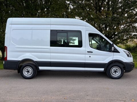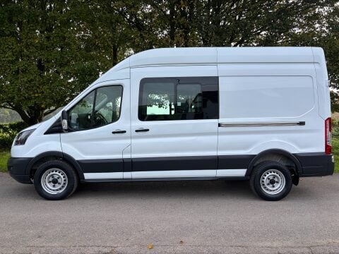 Ideal Commercials present this 2018 Ford Transit 350 Fwd L3 H3 Double Cab in Van finished in Frozen White. This one owner vehicle is fitted with Ford's 2.0 Tdci 130ps Euro 6 Engine and 6 Speed Gearbox and has covered only 20413 Miles and is supplied with Service History and 3 Months Warranty. Inside you will find Air Conditioning, Satellite Navigation, DAB/FM Radio with Apple Car Play & USB Connectivity, Electric Windows, Reach and Rake Adjustable Steering Column, Height Adjustable Drivers Seat with Arm Rest, Dual Passenger Seat with Stowage Below and a 3 Seat Rear Bench with Isofix Mountings. Externally you will find Remote Central Locking, Glazed Side Loading Door, and Solid Barn Doors leading to a Large Cargo Bay with Racking and Diesel Heater along with Factory Fitted Bulkhead. To save your time we offer a UK Mainland Delivery Service to help with those busy days. Vehicle supplied HPi Clear with Certificate for Peace of Mind, a Multi Point Inspection and all vehicles are Supplied Fully Valeted. We also offer great low monthly payments spread over 3, 4, and 5 years to suit your circumstances. A full range of accessories available to suit your needs from Towbars, Seat Covers, and Roofracks.