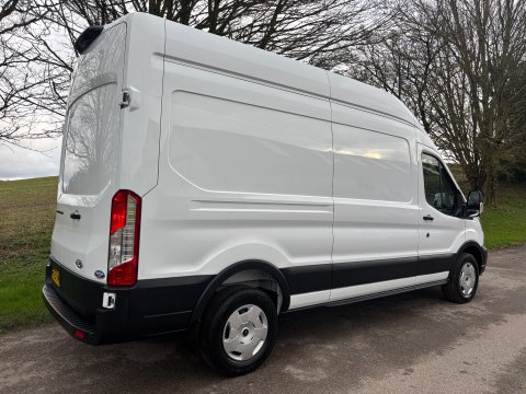 Ideal Commercials present this 2025 Ford Transit 350 L3 H3 Trend RWD Panel Van finished in Frozen White. This pre registered vehicle is fitted with Ford's 2.0 Tdci 130ps Euro 6 Engine and 6 Speed Gearbox and has covered only 263 Miles and is supplied with Ford Manufacturers Warranty until July 2028. Inside you will find Air Conditioning, Rear Parking Camera, 12" Media Screen with Bluetooth Phone and Media Connectivity, DAB/FM Radio with Apple Car Play/Android Auto, Quickclear Heated Windscreen, Automatic Headlights, Rain Sensing Wipers, Cruise Control, Driver & Passenger Air Bag, Electric Windows, Electrically Adjustable & Heated Wing Mirrors, Reach and Rake Adjustable Steering Column, Height Adjustable Drivers Seat and Dual Passenger Seat with stowage below. Externally you will find Remote Central Locking, Front and Rear Parking Sensors, LED Down Lighter above rear door, Side Loading Door, and Solid Barn Doors leading to a Factory Cargo Bay with Bulkhead.  To save your time we offer a UK Mainland Delivery Service to help with those busy days. Vehicle supplied HPi Clear with Certificate for Peace of Mind, a Multi Point Inspection and all vehicles are Supplied Fully Valeted. We also offer great low monthly payments spread over 3, 4, and 5 years to suit your circumstances. A full range of accessories available to suit your needs from Towbars, Seat Covers, and Roofracks.