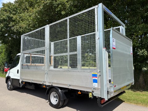 Ideal Commercials present this 2025 Iveco Daily 35C16HB Business Pack Caged Dropside Truck. This one owner vehicle is fitted with Iveco's 3.0 Turbo Diesel 160ps Euro 6 Engine and 8 Speed Automatic Gearbox and has covered only 357 Delivery Miles and is supplied with a Full Service History and Remainder of Iveco Manufacturers Warranty. Inside you will find Air Conditioning, Bluetooth Phone & Media Connectivity, Cruise Control, City Steer, DAB/FM Radio with USB Connectivity, Electric Windows, Electrically Adjustable & Heated Wing Mirrors, Reach and Rake Adjustable Steering Column, Height Adjustable Hi-Adaptive Drivers Seat and Dual Passenger Seat. Externally you will find Dual Rear Wheels, Remote Central Locking, Front Fog Lights, 15ft Internal Length Dropside Body with Removable Cages and a 500kgs Capacity Column Tail Lift. This Iveco also benefits from a 3.5t Towing Capacity, so this is the ultimate vehicle for moving large quantities of items.  To save your time we offer a UK Mainland Delivery Service to help with those busy days. Vehicle supplied HPi Clear with Certificate for Peace of Mind, a Multi Point Inspection and all vehicles are Supplied Fully Valeted. We also offer great low monthly payments spread over 3, 4, and 5 years to suit your circumstances. A full range of accessories available to suit your needs from Towbars, Seat Covers, and Roofracks.