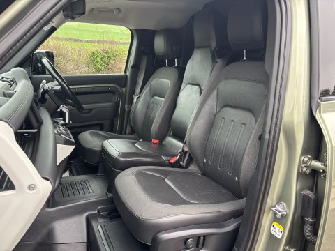 Ideal Commercials present this 2021 Land Rover Defender 110 SE Hard Top Panel Van finished in Pangea Green. This two previous owner vehicle is fitted with Land Rover's 3.0 Turbo Diesel 250ps Euro 6 Engine and 8 Speed Automatic Gearbox and has covered only 17115 Miles and is supplied with a Full Land Rover Service History and 3 Months Warranty. Inside you will find Satellite Navigation, 360 Degree Parking Camera's, Dual Zone Climate Controlled Air Conditioning, Bluetooth Phone and Media Connectivity, Meridian Audio with DAB/FM Radio and Apple Car Play, Automatic Headlights and Wipers, Adjustable Speed Limiter, Leather Upholstery with Heated Front Seats, Electric Windows, Electrically Adjustable & Heated Wing Mirrors, Electrically Adjustable Steering Column, Electrically Adjustable Driver & Passenger Seat with Folding "Jump" Seat. Externally you will find Remote Central Locking, Metallic Paintwork, Electrically Deployable Towbar, Privacy Glass, Side Steps and Full Sized Spare Wheel.  To save your time we offer a UK Mainland Delivery Service to help with those busy days. Vehicle supplied HPi Clear with Certificate for Peace of Mind, a Multi Point Inspection and all vehicles are Supplied Fully Valeted. We also offer great low monthly payments spread over 3, 4, and 5 years to suit your circumstances. A full range of accessories available to suit your needs from Towbars, Seat Covers, and Roofracks.