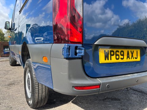 Ideal Commercials present this 2019 Mercedes-Benz Sprinter 316 Mwb Lr 4x4 Panel Van finished in Steel Blue. This one owner vehicle is fitted with Mercedes' 2.1 Cdi 161hp Euro 6 Engine and 6 Speed Gearbox and has covered 74710 Miles and is supplied Fully Serviced and with 3 Months Warranty. Inside you will find Bluetooth Phone and Media Connectivity, Rear Parking Camera (Twin Angle), Cruise Control, Selectable Low Range with Differential Lock, Hill Descent Control, DAB/FM Radio with USB Connectivity and Apple CarPlay/Android Auto, Electric Windows, Electrically Adjustable & Heated Power Folding Wing Mirrors, Adjustable Steering Column, Height Adjustable Drivers Seat and Single Passenger Seat. Externally you will find Remote Central Locking, Upgraded Security Locks to Cargo Doors, Rear Parking Sensors, Side Loading Door and Solid Barn Doors leading to a Lined Cargo Bay with Racking and 230v Invertor with Sockets.  To save your time we offer a UK Mainland Delivery Service to help with those busy days. Vehicle supplied HPi Clear with Certificate for Peace of Mind, a Multi Point Inspection and all vehicles are Supplied Fully Valeted. We also offer great low monthly payments spread over 3, 4, and 5 years to suit your circumstances. A full range of accessories available to suit your needs from Towbars, Seat Covers, and Roofracks.Â