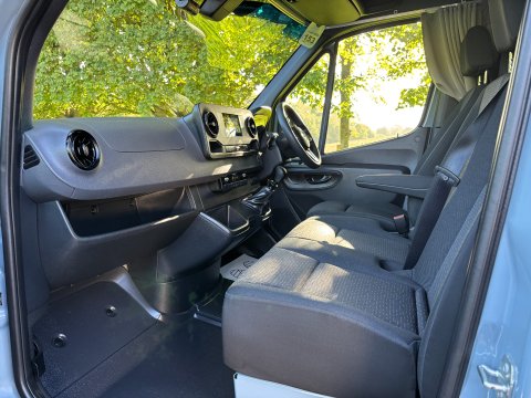 Ideal Commercials present this 2022 Mercedes-Benz Sprinter 319 L3 H2 Premium Panel Van finished in Blue Grey. This two owner vehicle is fitted with Mercedes' 2.0 Cdi 190ps Euro 6 Engine and 6 Speed Gearbox and has covered 86939 Miles and is supplied with a Full Mercedes Main Dealer Service History and 3 Months Warranty. Inside you will find Air Conditioning, Bluetooth Phone and Media Connectivity, Hatcher Shut Eye Sleeper Bed with Curtain's and Diesel Heater (£2838.50 + Vat), DAB/FM Radio with Apple Car Play/Android Auto, Cruise Control, Automatic Headlights, Electric Windows, Adjustable Steering Column, Height Adjustable Drivers Seat with Arm Rest and Dual Passenger Seat with stowage below. Externally you will find Remote Central Locking, Front and Rear Parking Sensors, Metallic Paintwork, Rear Safety Step, Full Cover Wheeltrims, Side Loading Door and Solid Barn Doors leading to a Ply Lined Cargo Bay with Hatcher Shut Eye Conversion Bulkhead.  To save your time we offer a UK Mainland Delivery Service to help with those busy days. Vehicle supplied HPi Clear with Certificate for Peace of Mind, a Multi Point Inspection and all vehicles are Supplied Fully Valeted. We also offer great low monthly payments spread over 3, 4, and 5 years to suit your circumstances. A full range of accessories available to suit your needs from Towbars, Seat Covers, and Roofracks.