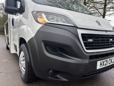 Ideal Commercials present this 2021 Peugeot Boxer 335 L3 Drop & Go Urban Traffic Management vehicle finished in Bianca White. This one owner vehicle is fitted with Peugeot's 2.2 BlueHDi 165ps Euro 6 Engine and 6 Speed Gearbox and has covered only 41131 Miles and is supplied Fully Serviced and with 3 Months Warranty.  Inside you will find Air Conditioning, Bluetooth Phone and Media Connectivity, FM/DAB Radio with USB Connectivity, Electric Windows, Electrically Adjustable & Heated Long Arm Wing Mirrors, Reach and Rake Adjustable Steering Column, Height Adjustable Drivers Seat with Arm Rest and Dual Passenger Seat. Externally you will find Remote Central Locking, Amber LED Pods, Beacon, and LED Work Lights, along with a Alloy Traffic Management Body with 3m Length, 1960mm Internal Width and 2210mm Height Protection Rails with Anti Slip Flooring and low 550mm Access Height to the body by the Dropsides or Rear Tailgate and Storage Cupboard to the Front of the Body.  To save your time we offer a UK Mainland Delivery Service to help with those busy days. Vehicle supplied HPi Clear with Certificate for Peace of Mind, a Multi Point Inspection and all vehicles are Supplied Fully Valeted. We also offer great low monthly payments spread over 3, 4, and 5 years to suit your circumstances. A full range of accessories available to suit your needs from Towbars, Seat Covers, and Roofracks.