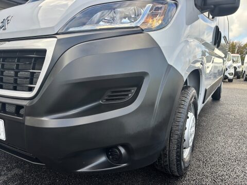 Ideal Commercials present this 2023 Peugeot Boxer 335 L3 H2 Professional Premium Plus Panel Van finished in Ice White. This delivery mileage vehicle is fitted with Peugeot's 2.2 BlueHdi 140ps Euro 6 Engine and 6 Speed Gearbox and has covered only 49 Delivery Miles and is supplied with a Full Service History and Peugeot Manufacturers Warranty until October 2026. Inside you will find Air Conditioning, Satellite Navigation, Bluetooth Phone and Media Connectivity, DAB/FM Radio with Apple Car Play/Android Auto, Cruise Control, Electric Windows, Electrically Adjustable & Heated Wing Mirrors, Reach and Rake Adjustable Steering Column, Height Adjustable Drivers Seat with Arm Rest and Dual Passenger Seat with Central Arm Rest. Externally you will find Remote Central Locking, Rear Parking Sensors, Side Loading Door and Solid Barn Doors leading to a Factory Fresh Cargo Bay with Factory Fitted Bulkhead.  To save your time we offer a UK Mainland Delivery Service to help with those busy days. Vehicle supplied HPi Clear with Certificate for Peace of Mind, a Multi Point Inspection and all vehicles are Supplied Fully Valeted. We also offer great low monthly payments spread over 3, 4, and 5 years to suit your circumstances. A full range of accessories available to suit your needs from Towbars, Seat Covers, and Roofracks.Â