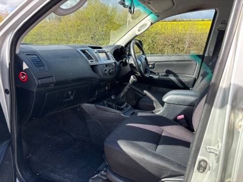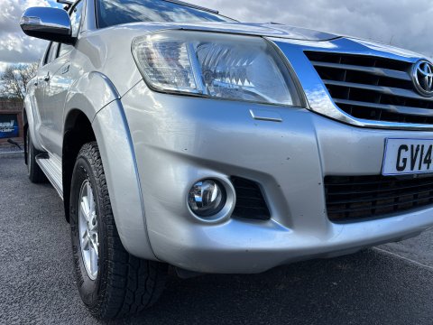 **Part Exchange to Clear - Trade Sale Only** Ideal Commercials present this 2014 Toyota Hilux Icon 4x4 Double Cab Pickup finished in Silver. This two owner vehicle is fitted with Toyota's 2.5 D-4D 142hp Euro 5 Engine and 5 Speed Gearbox and has covered 82009 Miles and is supplied with Service History (8 Services - mainly Toyota) and is supplied as a Trade Sale, no Warranty given or implied. Inside you will find Air Conditioning, Satellite Navigation, Rear Parking Camera, Bluetooth Phone and Media Connectivity, CD Player with FM Radio & USB Connectivity, Selectable Four Wheel Drive with Rear Diff Lock, Electric Front and Rear Windows, Electrically Adjustable Wing Mirrors, Adjustable Steering Column, and Cloth Upholstery. Externally you will find Remote Central Locking, Alloy Wheels, Roofbars, and a Load Liner to the Rear Bed. This vehicle has received no Cosmetic or Mechanical Preparation, and is a Trade Sale, no Warranty given or Implied. Â