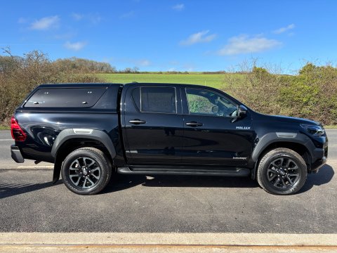 Ideal Commercials present this 2023 Toyota Hilux Invincible X 4x4 Double Cab Pickup finished in Galaxy Black. This one owner vehicle is fitted with Toyota's 2.8 D-4D 204ps Euro 6 Engine and Automatic Gearbox and has covered 58821 Miles and is supplied with Toyota Service History and 3 Months Warranty. Inside you will find Satellite Navigation, Climate Controlled Air Conditioning, Bluetooth Phone and Media Connectivity, Heated Front and Rear Seats, Leather Upholstery, Cruise Control, 360 Degree Camera's, DAB/FM Radio with USB Connectivity, Selectable Four Wheel Drive with Rear Diff Lock, Electrically Adjustable Drivers Seat, Single Passenger Seat, 3 Seat Rear Bench with Isofix Mountings, Adjustable Steering Column, Electric Front and Rear Windows and Electrically Adjustable & Power Folding Heated Wing Mirrors. Externally you will find Remote Central Locking, Metallic Paintwork, Alloy Wheels, Front and Rear Parking Sensors, Side Steps, Colour Coded Canopy with Gull Wing Panels leading to a Load Lined Cargo Bay.  To save your time we offer a UK Mainland Delivery Service to help with those busy days. Vehicle supplied HPi Clear with Certificate for Peace of Mind, a Multi Point Inspection and all vehicles are Supplied Fully Valeted. We also offer great low monthly payments spread over 3, 4, and 5 years to suit your circumstances. A full range of accessories available to suit your needs from Towbars, Seat Covers, and Roofracks.