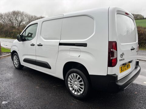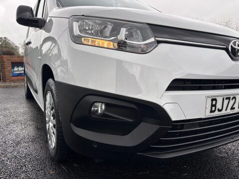Ideal Commercials present this 2022 Toyota Proace City L2 Panel Van finished in Solid White. This one owner vehicle is fitted with Toyota's 1.5 D-4D 102ps Euro 6 Engine and 6 Speed Gearbox and has covered only 1461 Miles and is supplied with a Full Service History and 3 Months Warranty (available up to 10 years with Additional Servicing at Toyota). Inside you will find Air Conditioning, Rear Parking Camera, Bluetooth Phone and Media Connectivtiy, DAB/FM Radio with Apple Car Play/Android Auto, Cruise Control, Automatic Headlights, Automatic Wipers, Electric Windows, Electrically Adjustable & Heated Power Folding Wing Mirrors, Adjustable Steering Column, Height Adjustable Drivers Seat and Dual Folding Passenger Seat. Externally you will find Remote Central Locking, Front Fog Lights, Front and Rear Parking Sensors, Full Cover Wheeltrims, Twin Side Loading Doors and Solid Barn Doors leading to a Factory Fresh Cargo Bay with Factory Fitted Bulkhead.  To save your time we offer a UK Mainland Delivery Service to help with those busy days. Vehicle supplied HPi Clear with Certificate for Peace of Mind, a Multi Point Inspection and all vehicles are Supplied Fully Valeted. We also offer great low monthly payments spread over 3, 4, and 5 years to suit your circumstances. A full range of accessories available to suit your needs from Towbars, Seat Covers, and Roofracks.