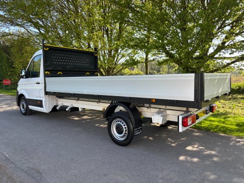 Ideal Commercials present this 2024 Volkswagen Crafter CR35 Lwb Single Cab Dropside finished in Candy White. This one owner vehicle is fitted with Volkswagen's 2.0 Tdi 140ps Euro 6 Engine and 6 Speed Gearbox and has covered 48353 Miles and is supplied with a Full Service History and Volkswagen Manufacturers Warranty until January 2027. Inside you will find Bluetooth Phone and Media Connectivity, FM Radio with USB Connectivity, Electric Windows, Cloth Upholstery with Dual Folding Passenger Seat with Stowage below. Externally you will find Remote Central Locking, a 4.3m Internal Length Dropside Body, and Lightweight Dropsides for Increased Payload.  To save your time we offer a UK Mainland Delivery Service to help with those busy days. Vehicle supplied HPi Clear with Certificate for Peace of Mind, a Multi Point Inspection and all vehicles are Supplied Fully Valeted. We also offer great low monthly payments spread over 3, 4, and 5 years to suit your circumstances. A full range of accessories available to suit your needs from Towbars, Seat Covers, and Roofracks.